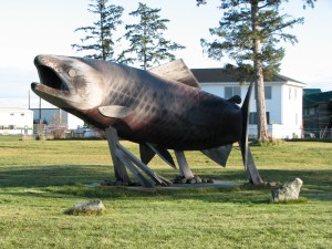 Large fish sculpture in Sandspit BC in Haida Gwaii.
