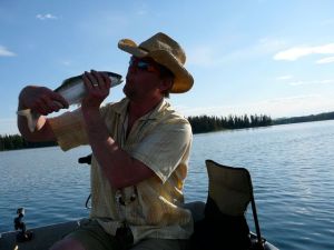 Trev getting some action on Fawn Lake.