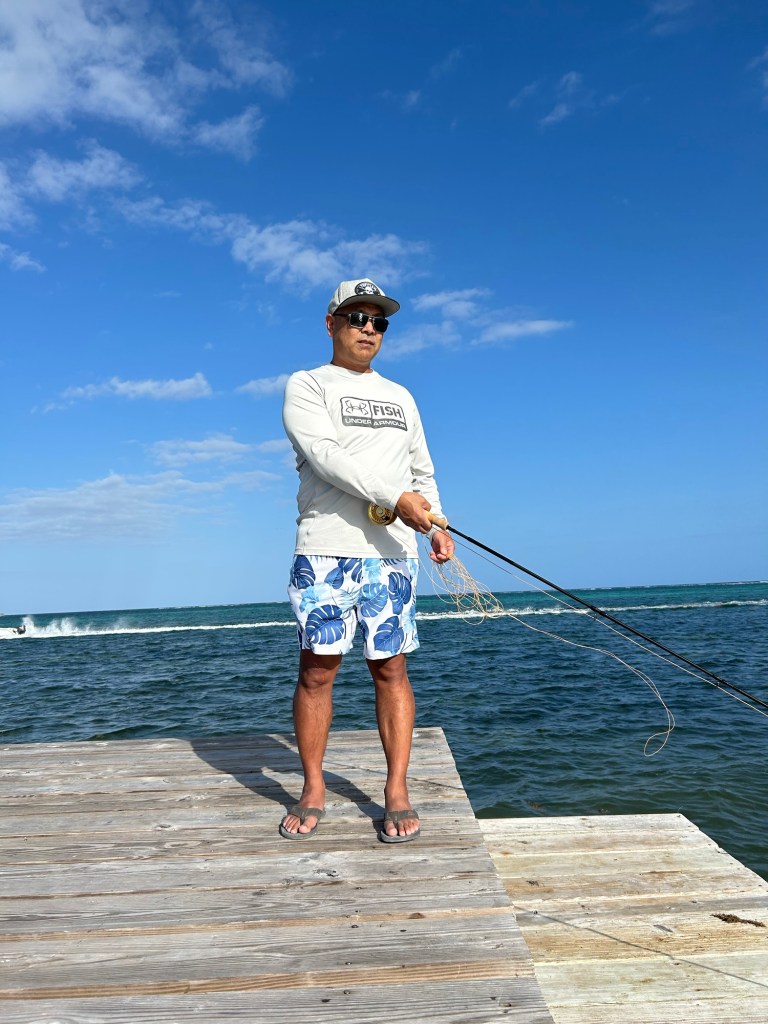 My guide is a true Belizian dude with a Rastafarian accent who had a Guatemalan side kick. I started off the day having to show the guide I could cast and then proceeded to give me specifics to how he wanted me to cast and retrieve and set the hook when we see a tarpon. Specifically …don’t cast on top of tarpon, retrieve constantly with smooth strips of 25 inches and most importantly when the fish bites don’t pull the rod ip like we all do with almost all the fish we catch. Now let me reiterate the scene, this Belizian Rastafarian sounding guide says when u set the hook you pull back hard and if u have to pull twice to get the hook through the tarpons plated mouth…..DONT raise the rod…we say you have to bow to the gods and keep tip down always.