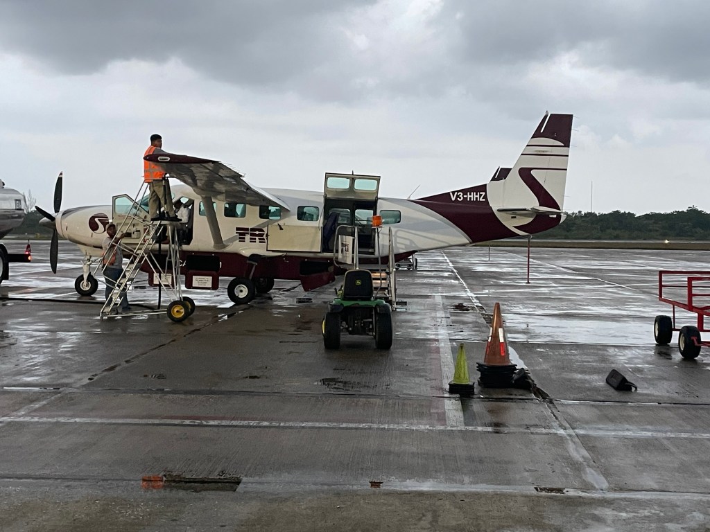 First of all, Rebeca almost didn’t make it through the smal plane we took to get to this Caye. It was windy and I admit windy enough that our plane was sideways at one point taking off….but we survived!