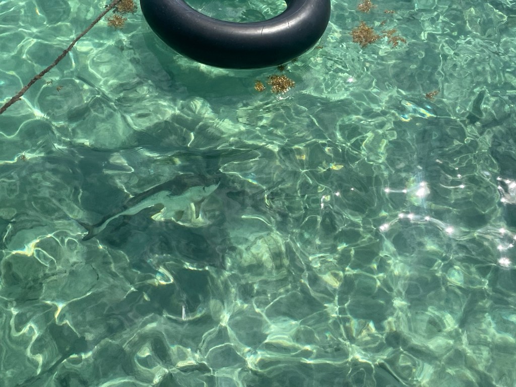 If that wasn’t enough the next stop blew our mind as we went to an area where we got to swim with a bunch of nurse sharks. Although known to be tame some of these sharks looked to be as long as 8 ft! Not only that we were swimming within 6 ft of these beautiful sharks! So much fun! I have to say even though Rebeca reminded me to make sure she swam with sharks even though she may resist, before I could even get my fins on she was already in the water trying to get the best view of these cool looking sharks.