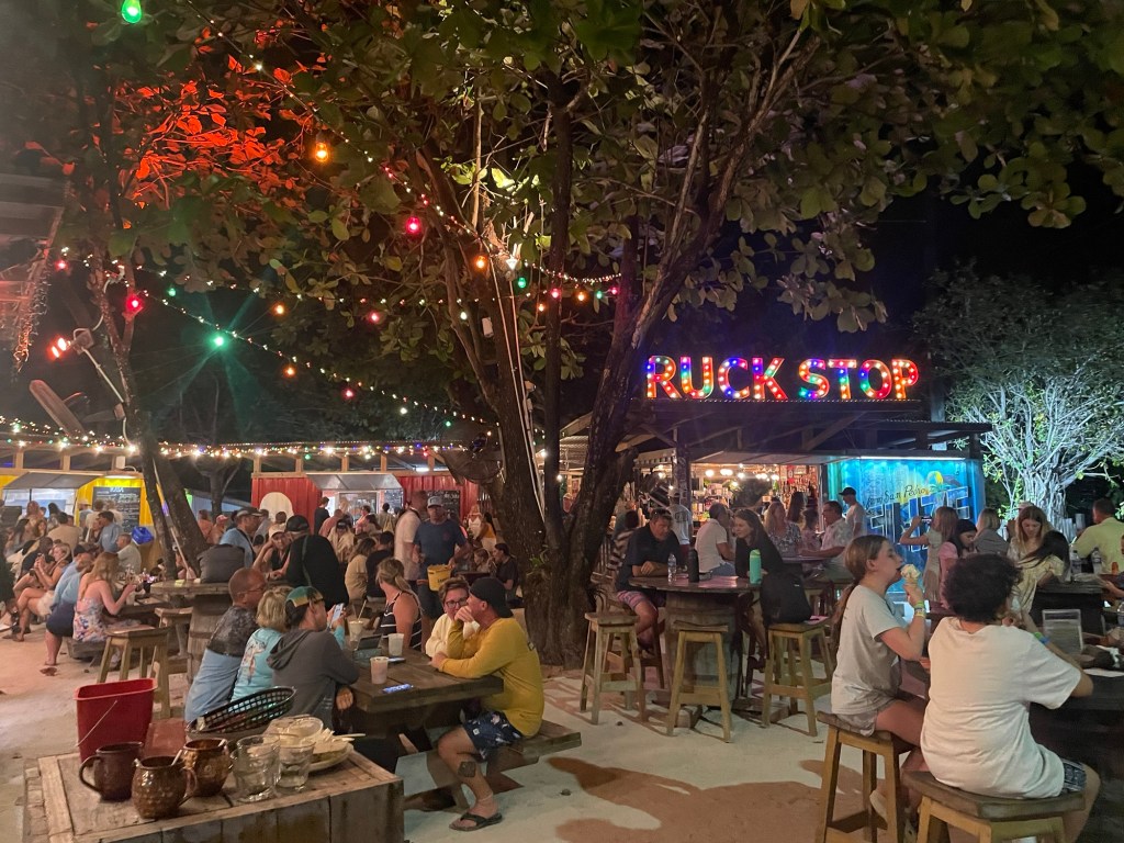 The truck stop was cool because there were food trucks, live bands, a pool, an outdoor movie, games area as well as a dock overlooking a lagoon. Will come back for sure to check out more action here.