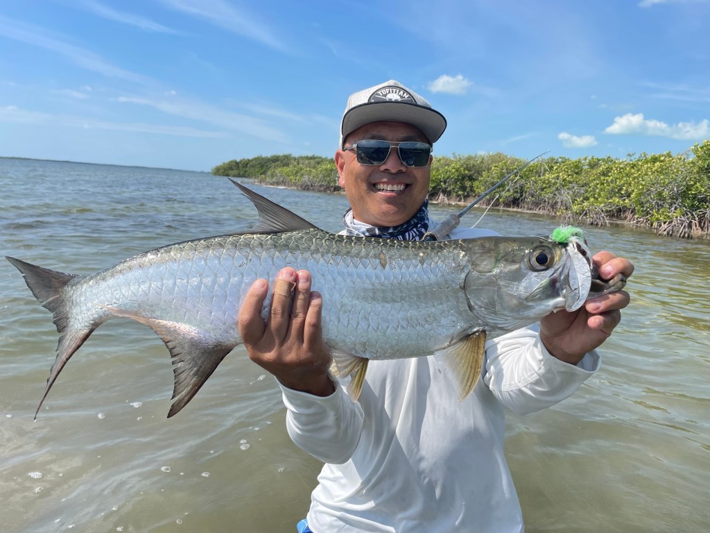 24 03 2025Well today I went out with a guide to target some fish on my bucket list….tarpon and permit. The guide took me to the mangroves where we searched or should I say hunted for tarpon. Hunted because you quietly moved through out the mangrove shallows looking for surfacing fish. As soon as we got to the first place we saw some moving and surfacing right away. Almost like trout sipping flies off the surface. But before I go on let me back up a bit.