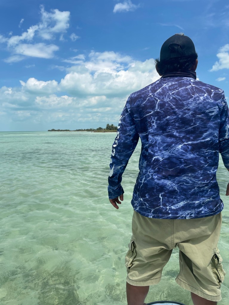 We get a few photos, celebrate with a drink and the my guide asks “Should we move to try and get permit?” I respond with a yes. Landing bones yesterday and this morning a tarpon… of course we try for the grand slam.