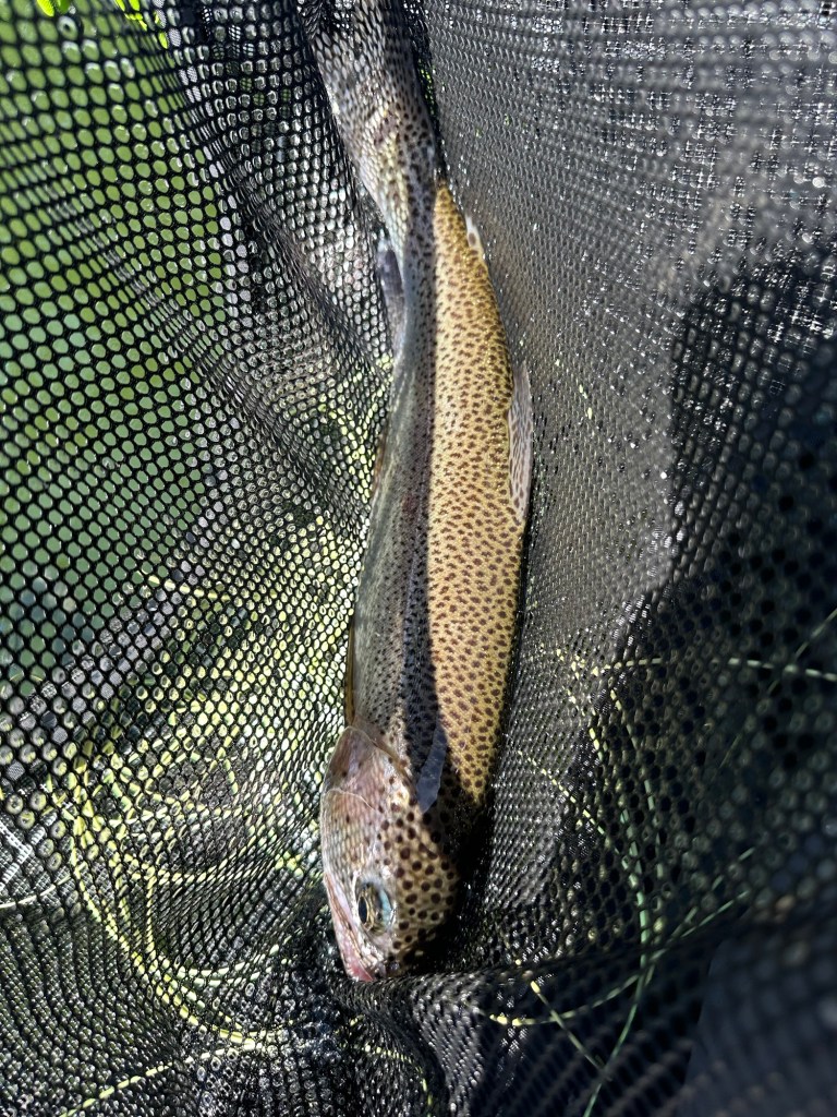 Although we didn’t”t land a lot of fish it was sure cool tossing dries in still water for trout which were feeding on caterpillars falling from a tree in 6 inches of water.