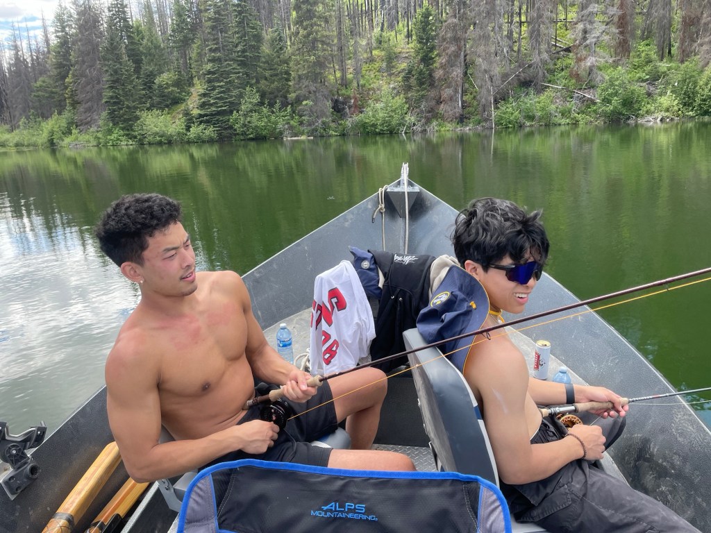 The weather and my schedule finally allowed me to go fishing for the weekend with my son and his friend. On this trip we got into a ton of fish on chironomids and a maroon UV leech pattern. Although fish were not big they were plentiful and fought hard.