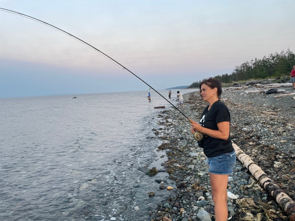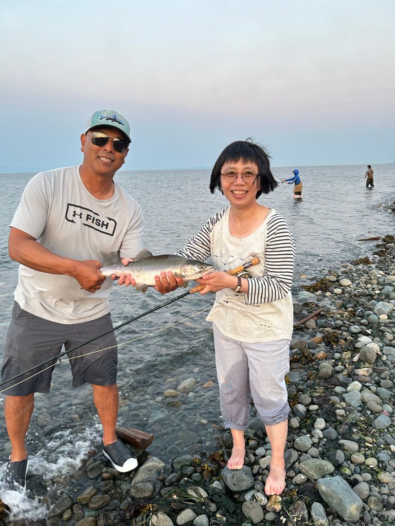 Went for a walk to the beach and found out guys were catching salmon. This is when I am happy that I brought the eight weight and 5 wgt rods as well as salmon and stillwater flies: