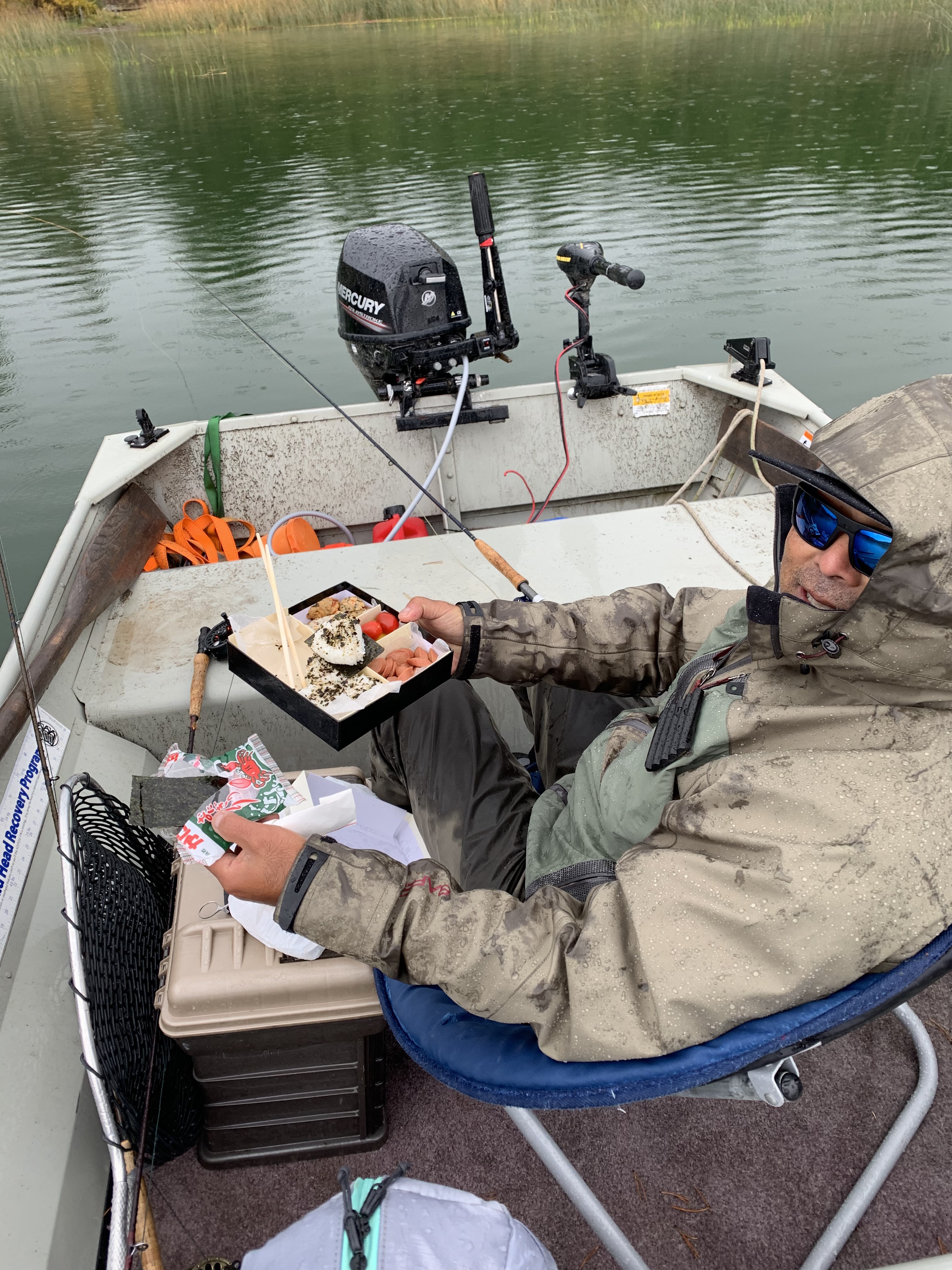 Day one-we hit a lake we have had a lot of success on before. Of course, weather was very unstable and fishing was very slow. A couple of small ones for me and one larger one to the boobie on the surface was all I saw.The good news was that there was some home cooked meals waiting for us after the day ended.